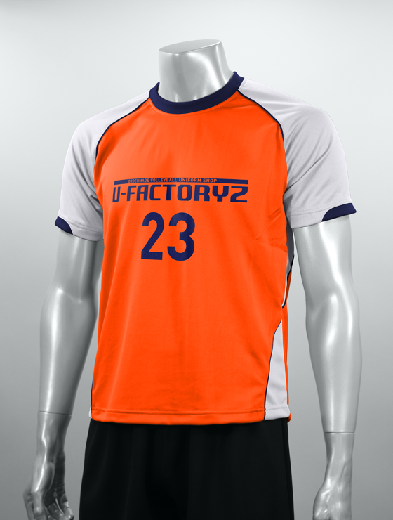 縫製セミオーダーPR03+チーム名・胸番号・背番号プリント 橙色/白の激安ネット通販バレーボールファクトリーズ