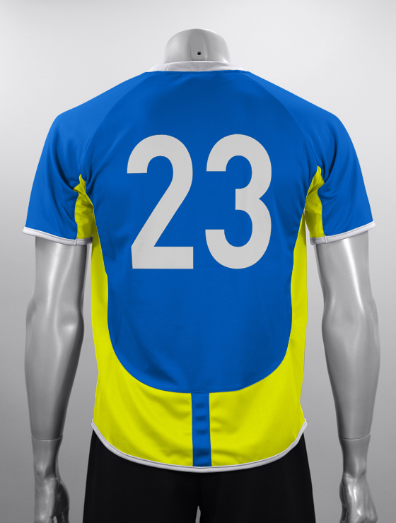 縫製セミオーダー01+チーム名・胸番号・背番号プリント シアン/黄色
