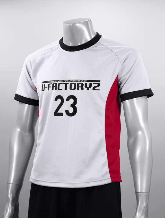 縫製セミオーダー02+チーム名・胸番号・背番号プリント 白/エンジの激安ネット通販バレーボールファクトリーズ